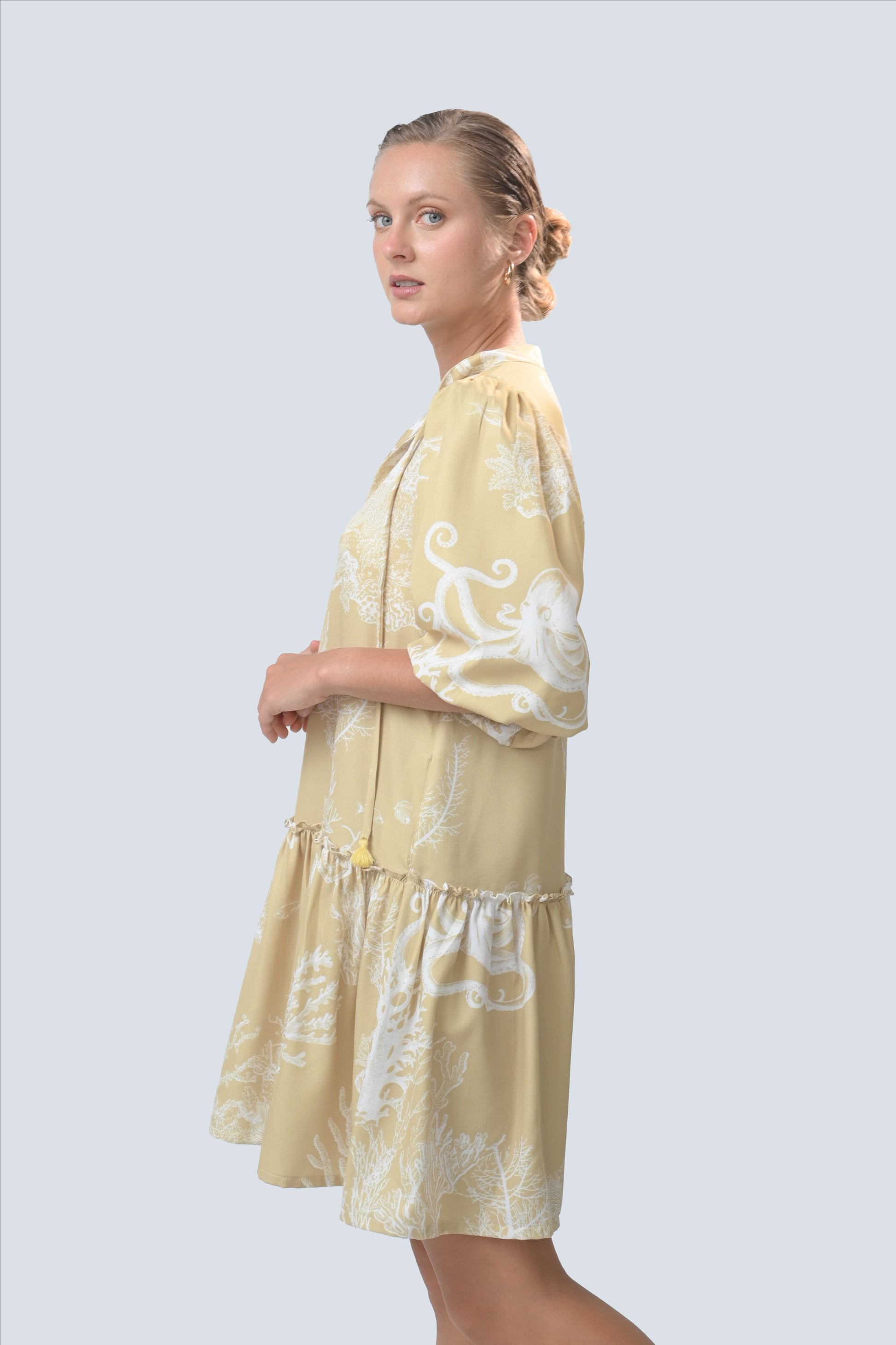 • Mandarin collar, v-neckline• With bow tie straps with fringe tassel