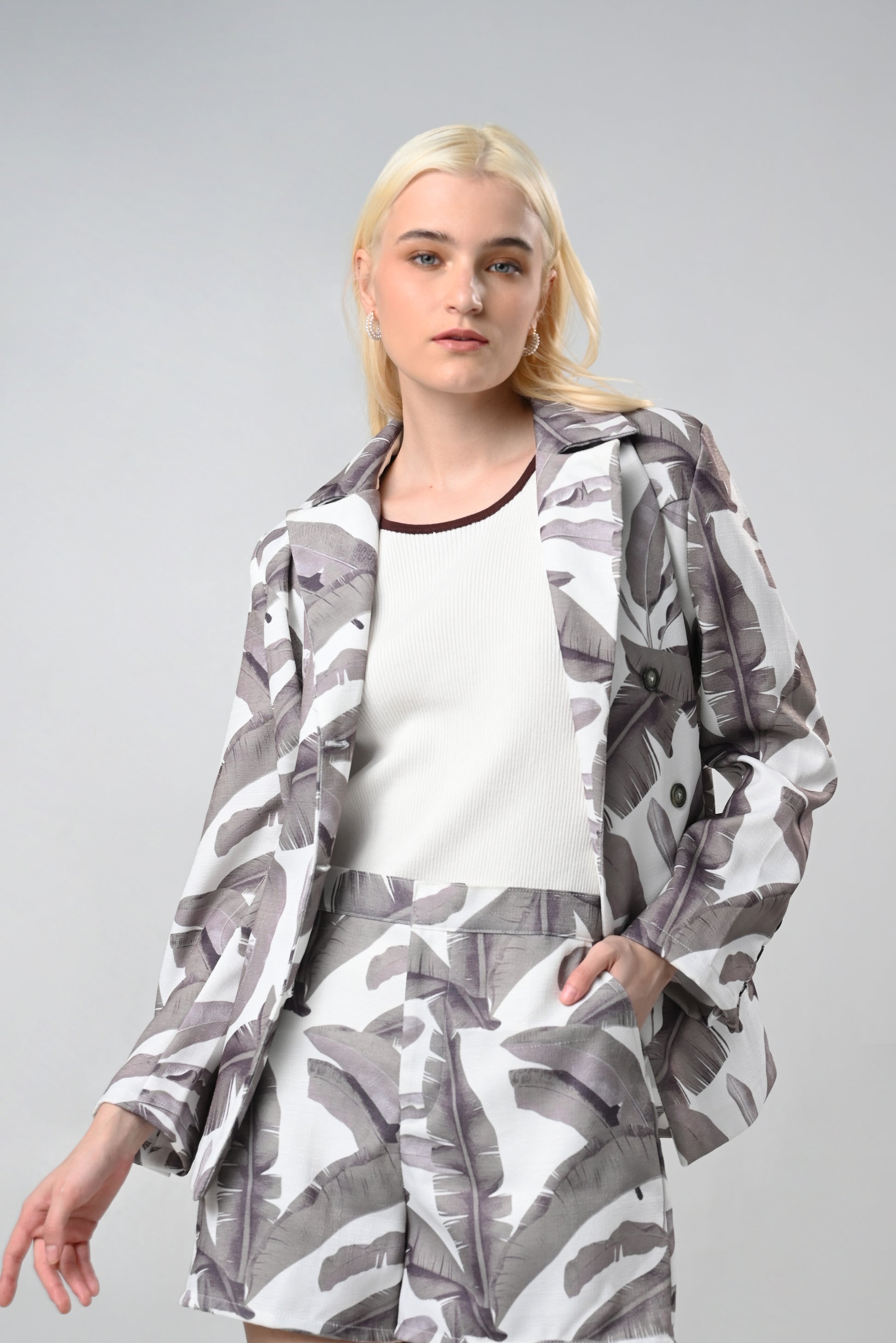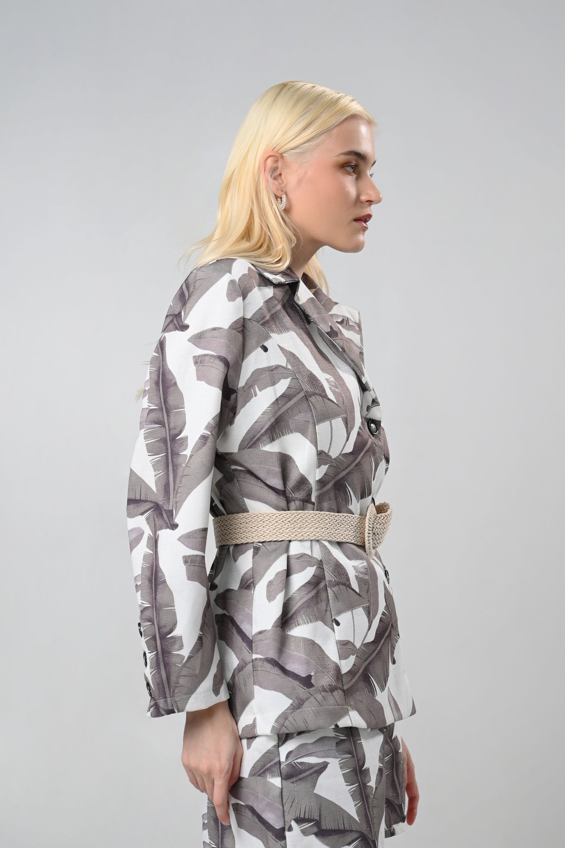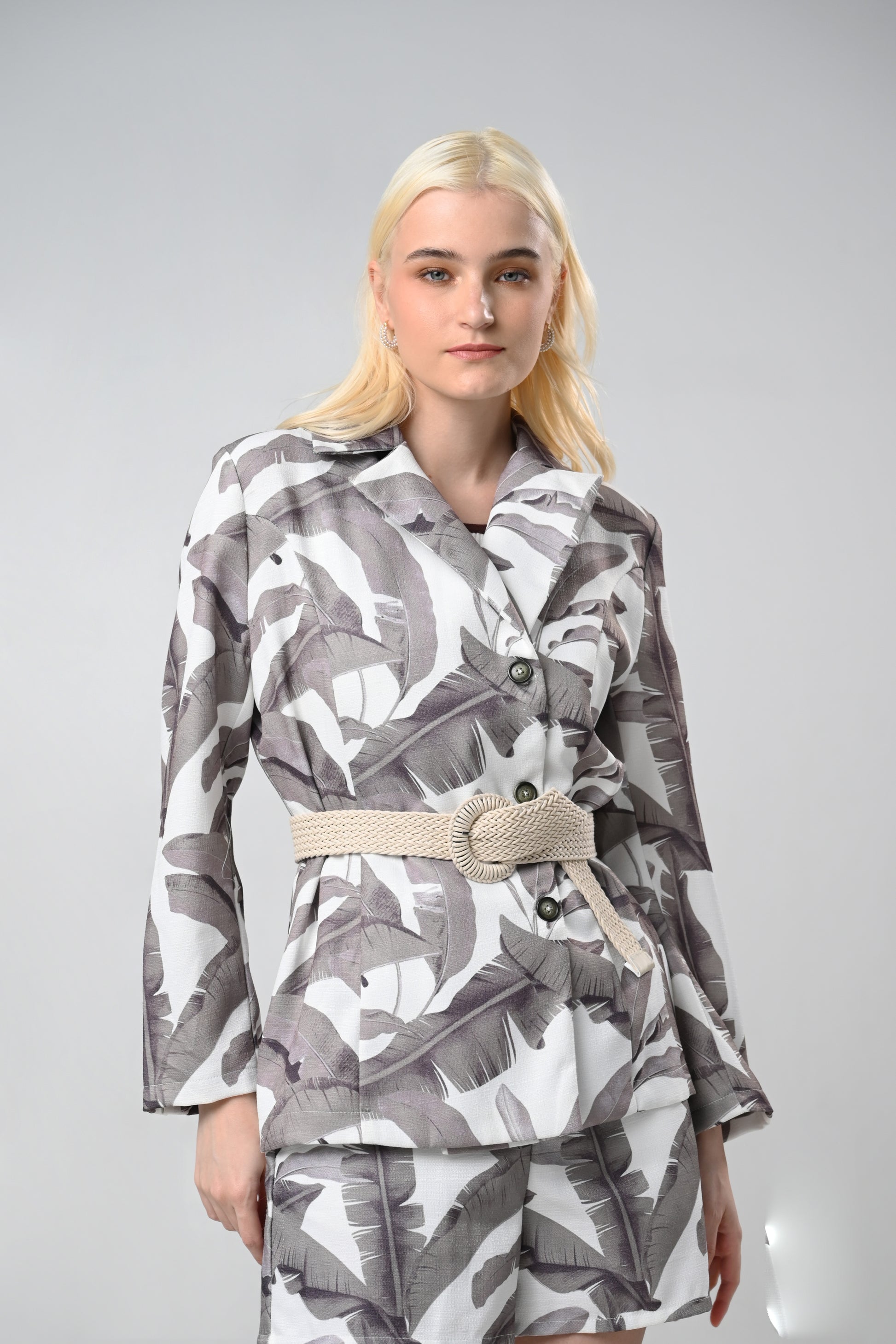 Cover up with some fashion foliage. The Capri top by RAF brings a summery flair on cover-ups and outerwear, featuring a peacoat inspired fit, notched collar and a single breasted closure.