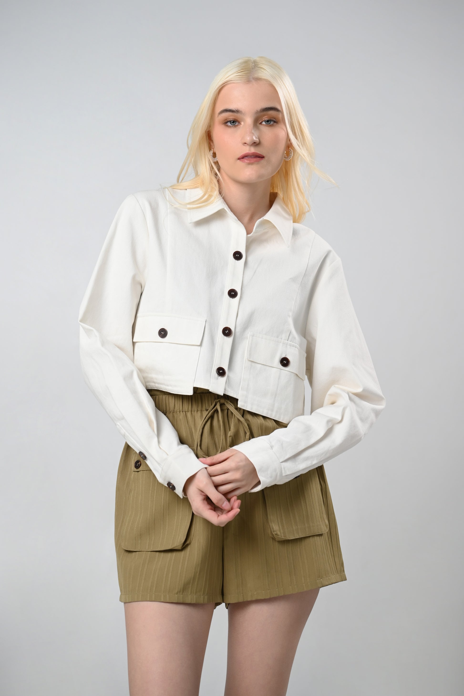 Chic is an everyday choice, and what a good choice it is with the Crosta shorts by RAF. Gartered waistband flairs into a beautiful rounded silhouette. Flap pocket details complete the look, together with drawstring detailing along the waist.
