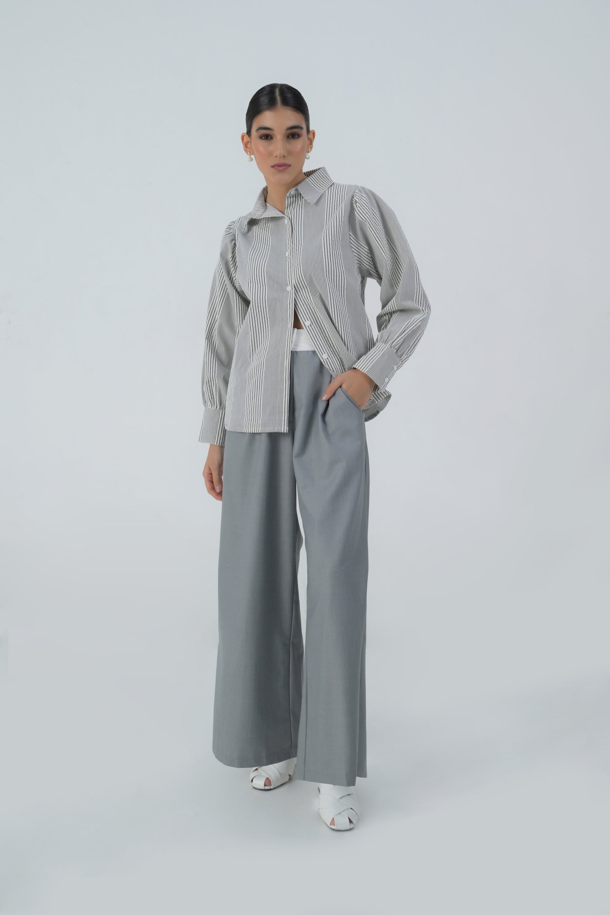 Your on-the-go pants are here. The Dates pants features a sleek yet urbanized vibe, featuring a high-waisted fit with wide-leg fit.