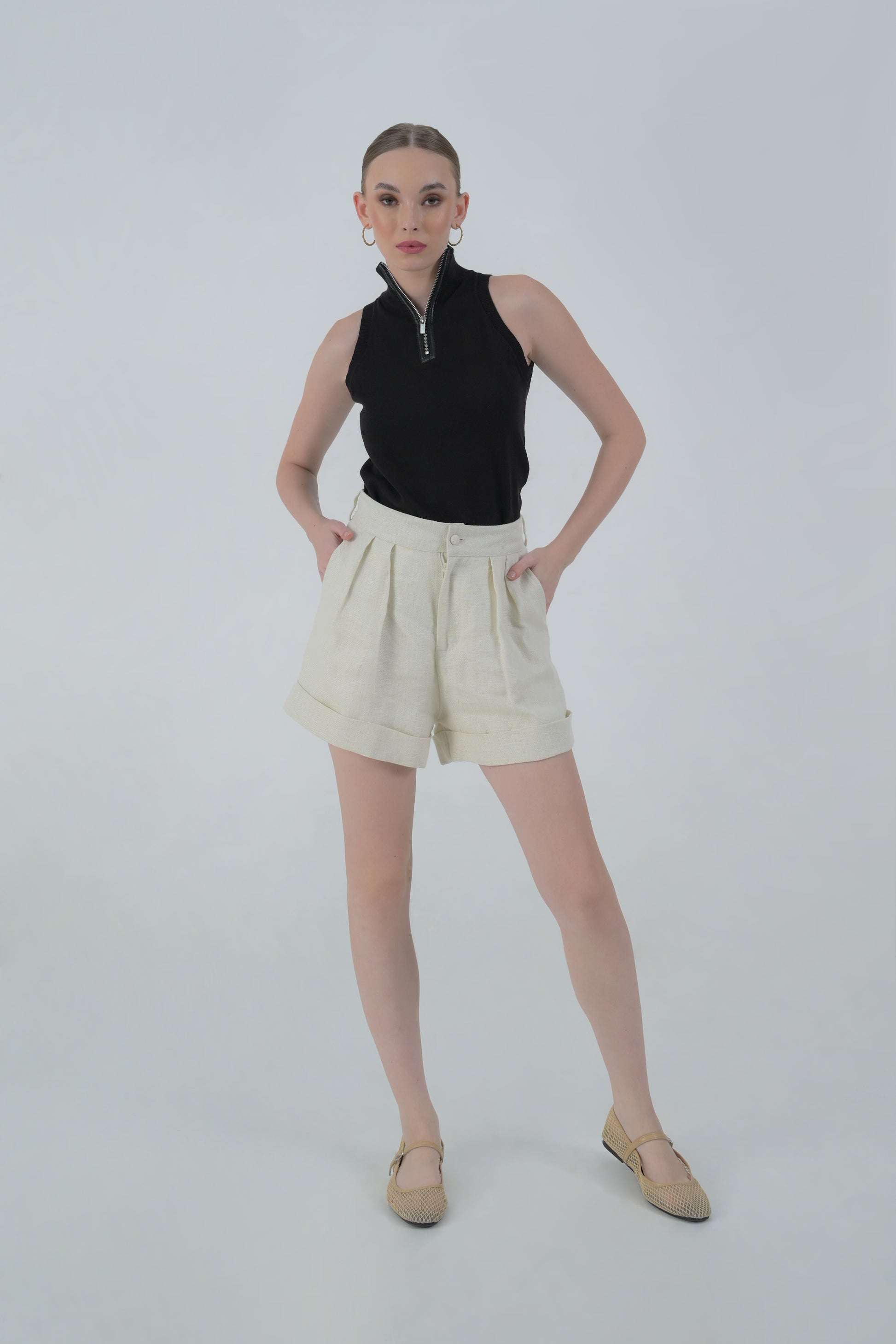 Simple doesn't have to be strict. Add movement and casual flair to a well-tailored pair of short pants a la RAF Deann shorts, that feature beautiful pleating at the front panel, and cut perfectly high on the waist for a beatifully proportioned look.