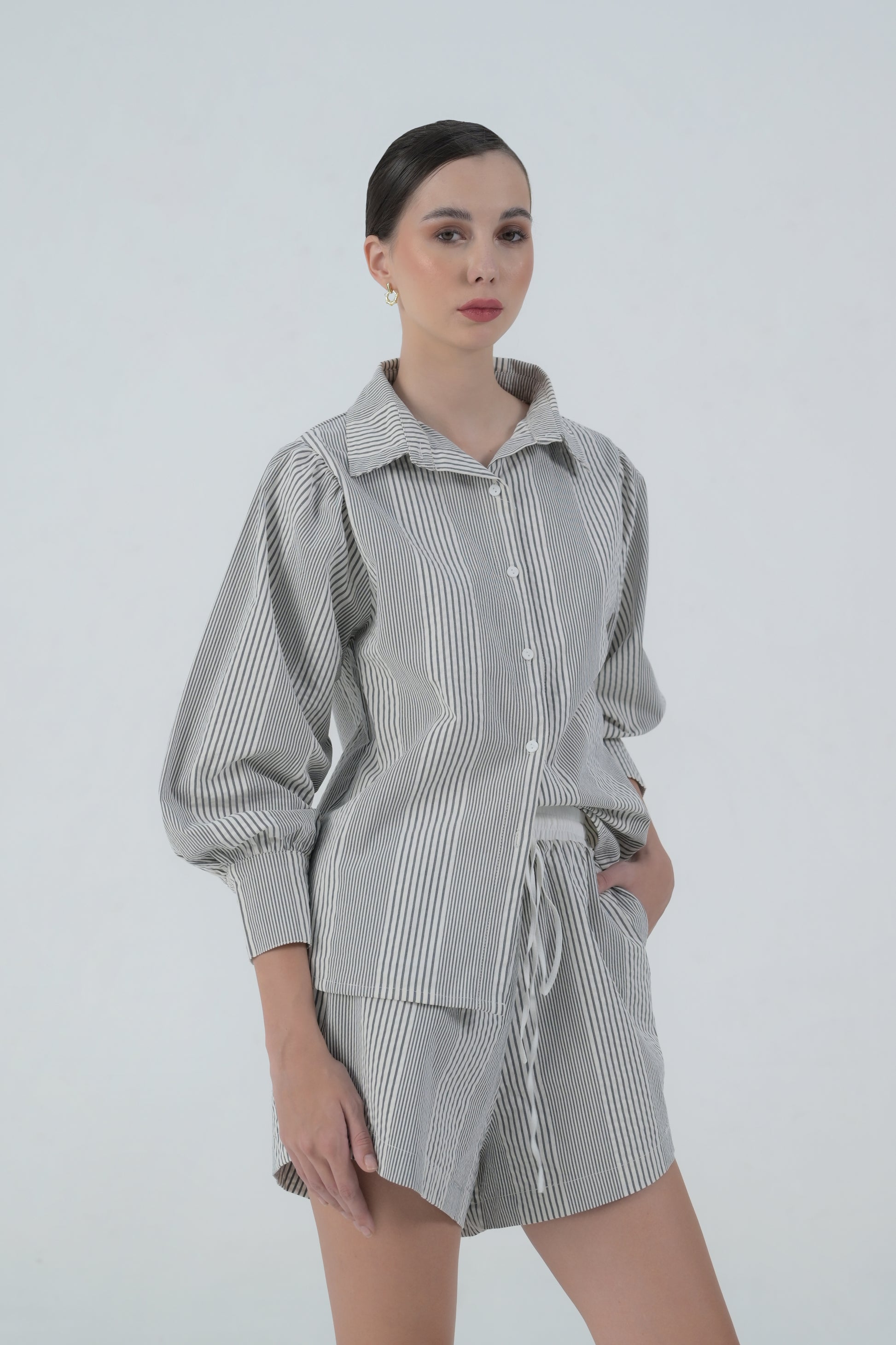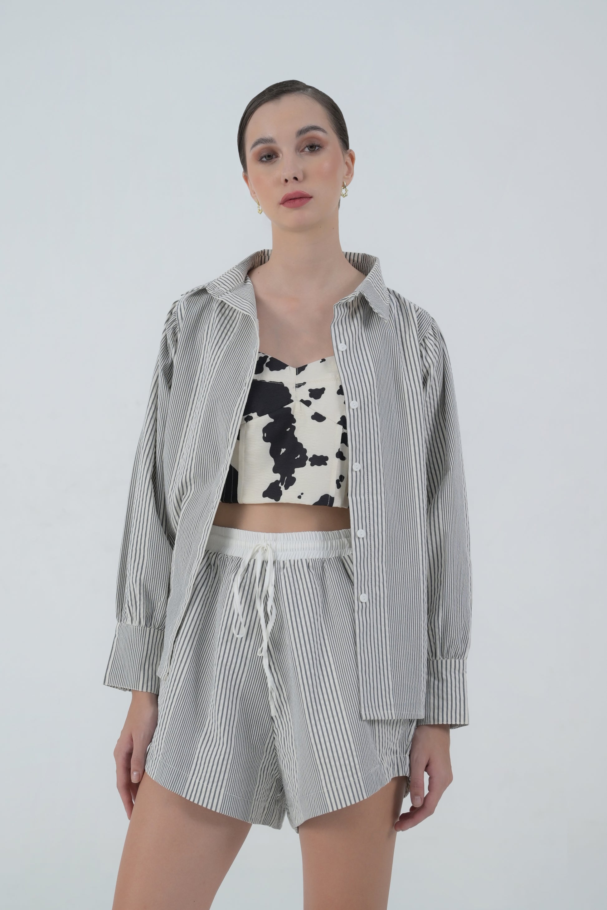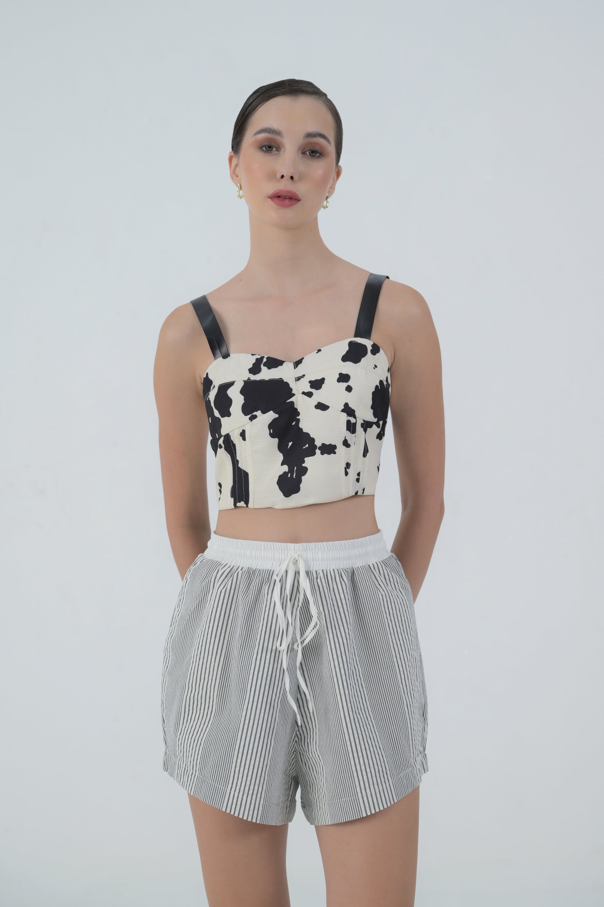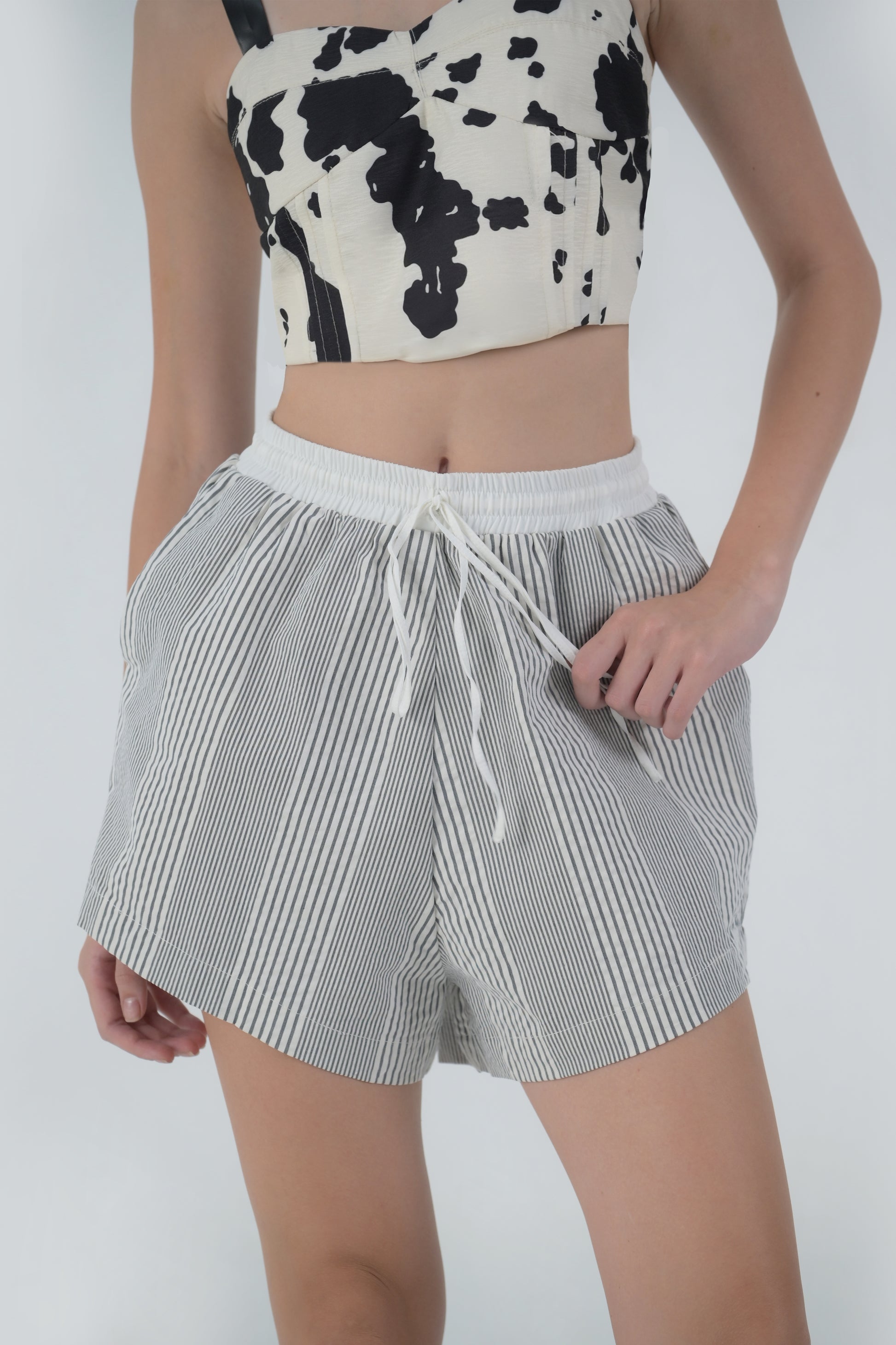 She sports a beautiful fit. The Delta shorts is all casual elegance with striped design with a sporty waistband with drawstring details.