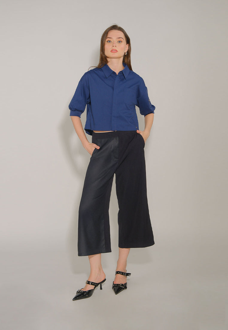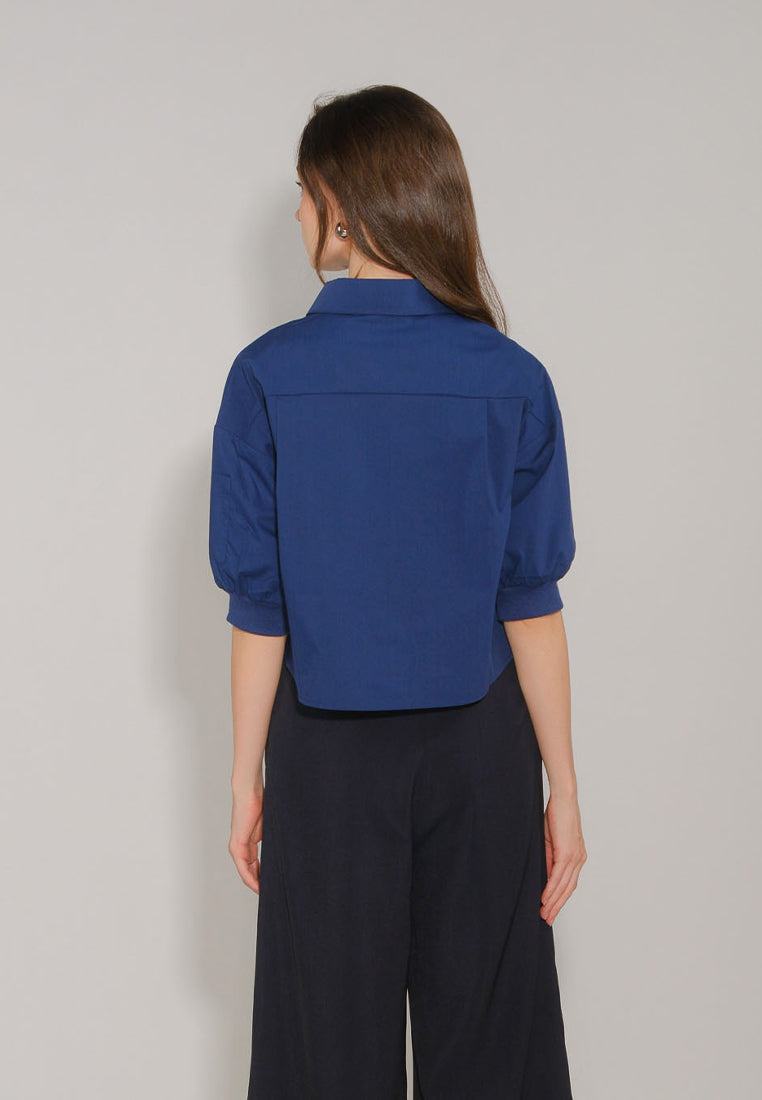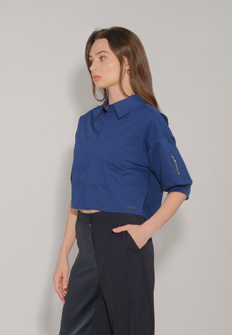 The quarter-sleeved button-down shirt features a classic collar and a concealed button placket for a seamless fit.