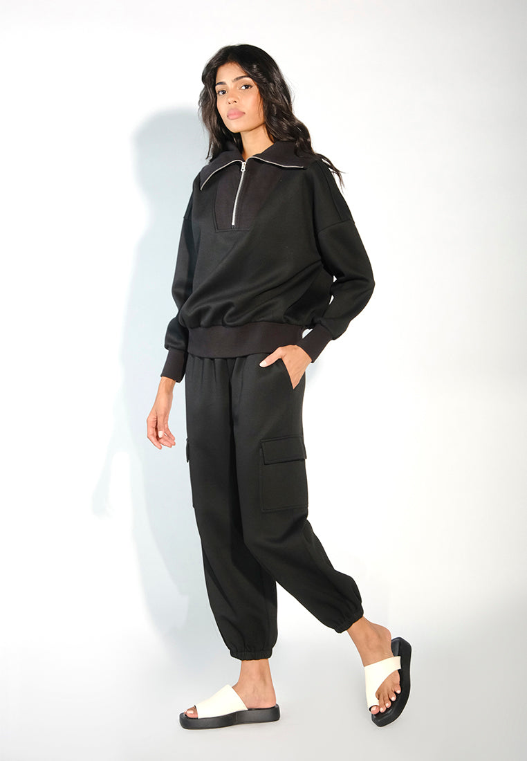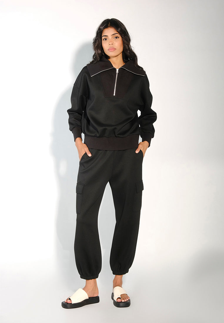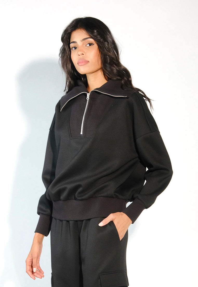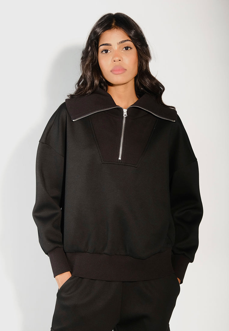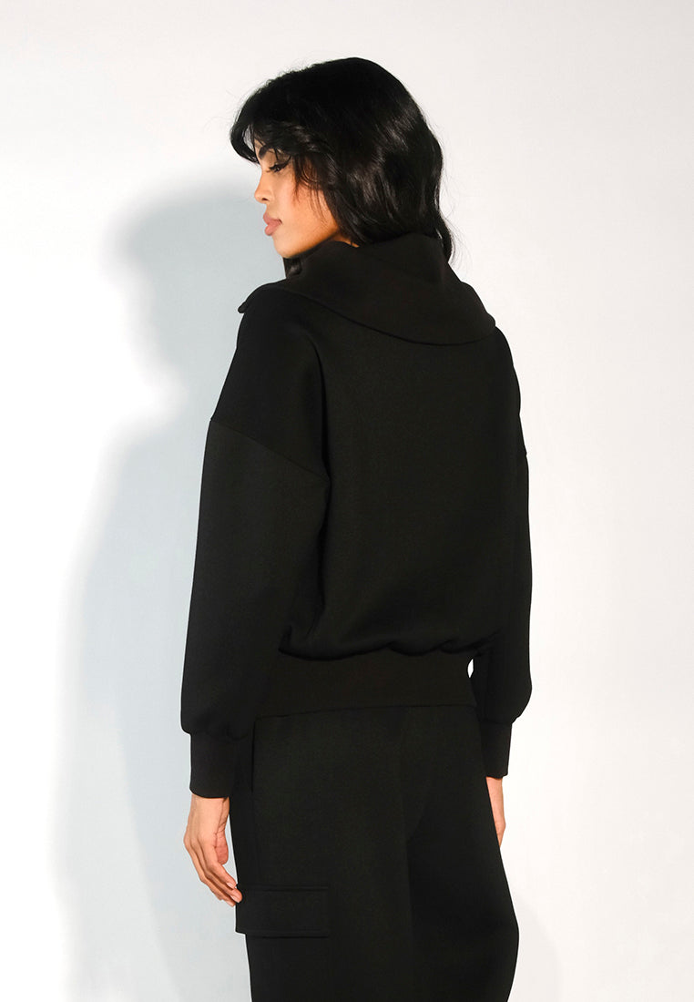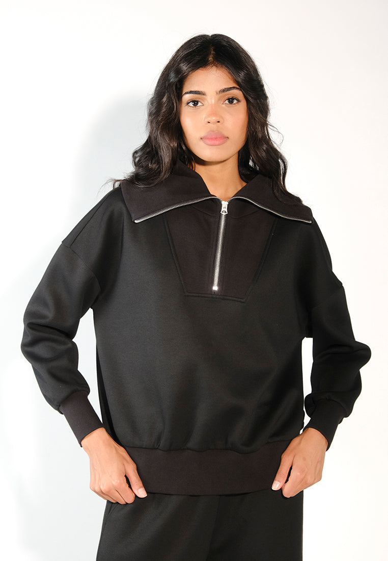 Long-sleeve top in heavy knit fabric with a regular-fit silhouette. Features long sleeves with ribbed cuffs, a half-zip sailor-inspired ribbed collar, and a regular length for everyday comfort and ease.