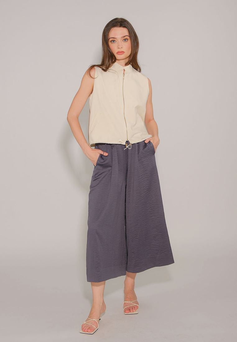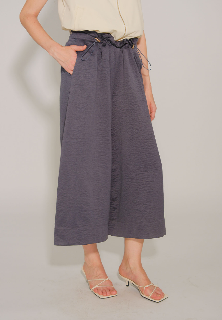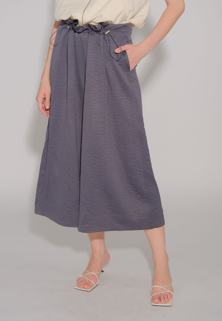 High-rise culottes featuring a drawstring waistband and a wide-leg fit that hits below the knee.