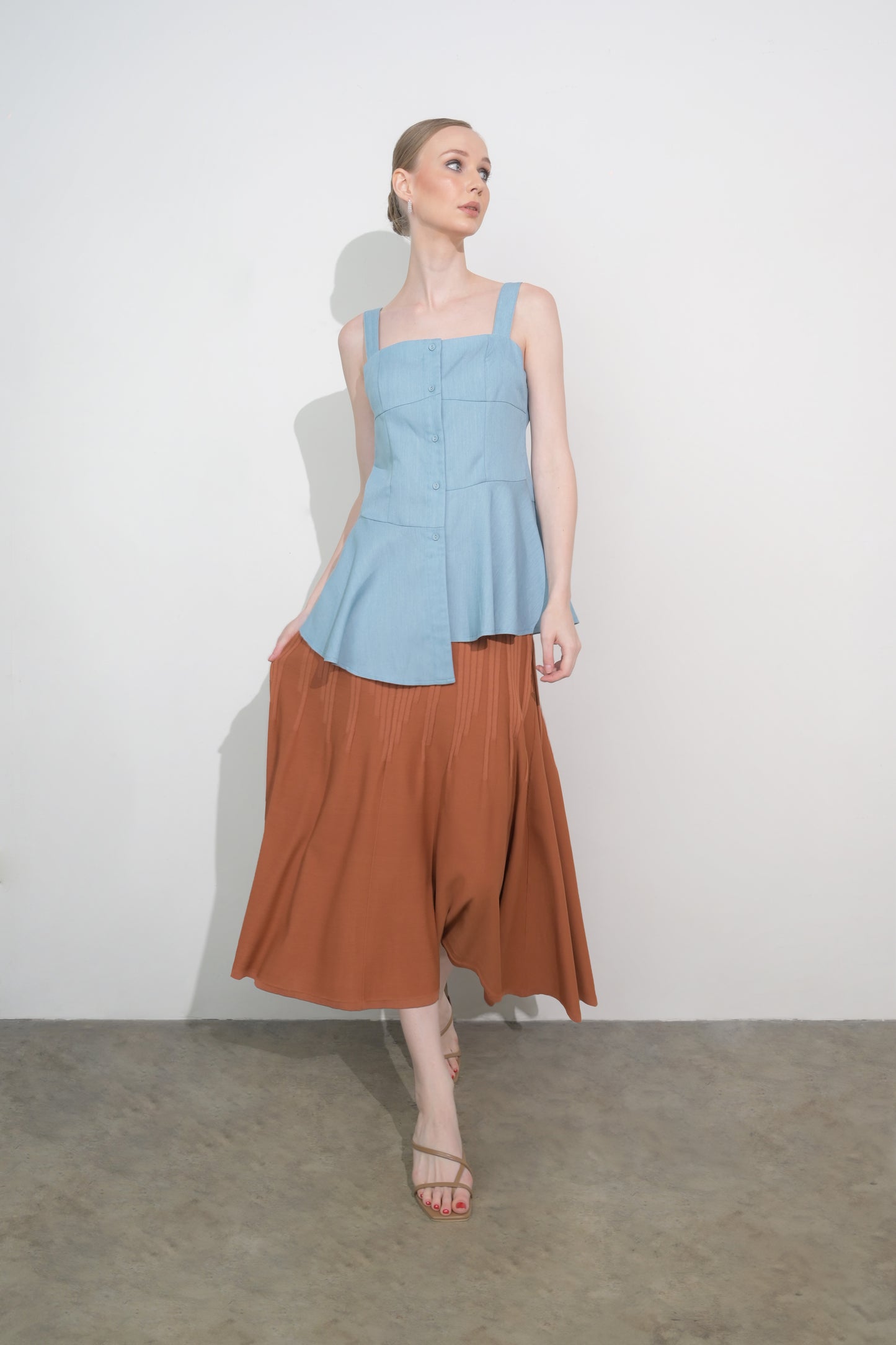 With a beautiful asymmetrical flounced skirt, the Fargo top by RAF exudes elegance and refinement, featuring a beautifully delicate flow from neckline to hem, secured at the front bodice with button closures.